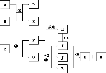 已知:A为淡黄色固体,E、F、G为单质,且E、F、H为无色,I为红棕色气体,J与盐酸反应生成不溶于X的白色沉淀.