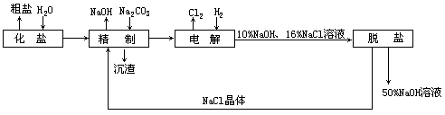 氯碱厂电解饱和食盐水制取NaOH的工艺流程示意图如下:
