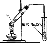 如果在试管甲中先加入4,6 g乙醇,并在摇动下缓缓加入2 mL浓硫酸,充分摇匀,冷却后再加入3 g无水乙酸,用玻璃棒充分搅拌后试管固定在铁架台上:在试管乙中加入5 mL饱和碳酸钠溶液,按下图连接装置,用酒精灯对试管甲加热,当观察到试管乙中有明显现象时停止加热.试回答:
