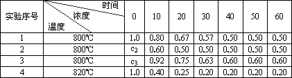 某化学反应2AB+D在四种不同条件下进行,B、D起始浓度为0.反应物A的浓度(mol/L)随反应时间(min)的变化情况如下表: