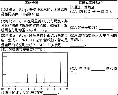 有机物A可由葡萄糖发酵得到,也可从酸牛奶中提取.纯净的A为无色粘稠液体,易溶于水.为研究A的组成与结构,进行了如下实验: