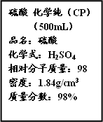 下图是某学校实验室从化学试剂商店买回的浓硫酸试剂标签上的部分内容.现用该浓硫酸配制100 mL 1 mol·L-1的稀硫酸.