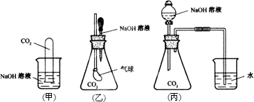 某课外活动小组为探究CO2与过量的NaOH溶液确实发生了化学反应,甲、乙、丙三位同学设计了下列三种实验装置,请回答下列问题: