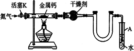 (3)制备氮化钙的操作步骤是①打开活塞K并通入N2;②点燃酒精灯,进行反应;