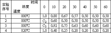 某化学反应2A(g)B(g)+d(g)在四种不同条件下进行,反应器均为相同恒容密闭容器,B、D起始浓度为0.反应物A的浓度(mol·L-1)随反应时间(min)的变化情况如下表: