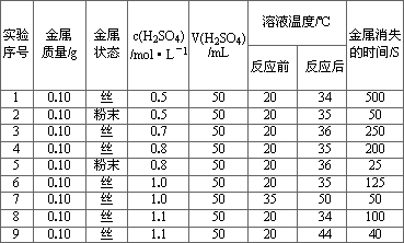实验一∶他们利用Cu、Fe、Mg和不同浓度的硫酸(0.5 mol/L、2 mol/L、18.4 mol/L),设计实验方案来研究影响反应速率的因素.