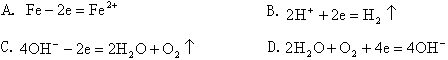 A.4OH--4e=2H2O+O2↑ B.Fe-2e=Fe2+