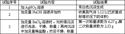 (1)根据实验1对Cl-是否存在的判断是________(填“一定存在”、“一定不存在”或“不能确定”);根据实验l~3判断混合物中一定不存在的离子是________.