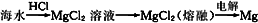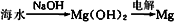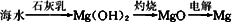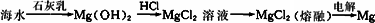 已知MgO、MgCl2的熔点分别为2 800℃、604℃,将MgO、MgCl2加热熔融后通电电解,都可得到金属镁.海水中含有MgCl2,工业上从海水中提取镁,正确的方法是 | |