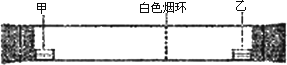 已知气体的摩尔质量越小,扩散速度越快.下图所示为气体扩散速度的试验,两种气体扩散相遇时形成白色烟环.下列关于物质甲、乙的判断正确的是