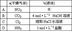 如图,试管内装有12 mL NO气体,然后间断地慢慢地通入16 mL O2,下面有关实验的最终状态描述正确的是( ).