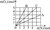 下图中横坐标表示完全燃烧时耗用可燃气体X(X=A、B、C)的物质的量n(X),纵坐标表示消耗O2的物质的量n(O2),A、B是两种可燃气体,C是A和B的混合气,则C中n(A)∶n(B)为