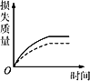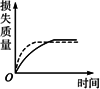 将a g块状碳酸钙跟足量盐酸反应,反应物损失的质量随时间的变化曲线如下图的实线所示.在相同的条件下,将b g(a>b)粉末状碳酸钙与同浓度盐酸反应,则相应的曲线(图中虚线所示)正确的是 | |