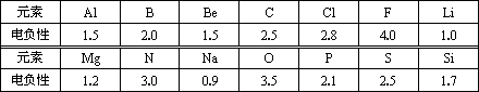 已知元素的电负性和原子半径一样,也是元素的一种基本性质.下面给出14种元素的电负性: