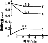某温度时,在2 L容器中X、Y、Z三种物质的物质的量随时间的变化曲线如图所示,由图中数据分析,该反应的化学方程式为________;反应开始至2 min,Z的平均反应速率为________.