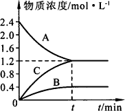 下图表示800℃时,A、B、C三种气体物质的浓度随时间变化的情况,t是达到平衡状态的时间.