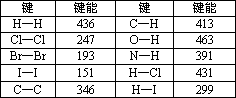 某些共价键的键能(kJ·mol-1)如下表(25℃下数据)据此,请完成下列问题: