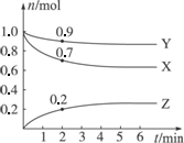某温度时,在2 L容器中,X、Y、Z三种物质的物质的量随时间的变化曲线如下图所示.