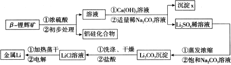 用β-锂辉矿与硫酸等物质制备金属锂的工业流程如下: