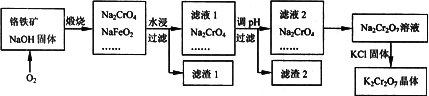 铬铁矿的主要成分可表示为FeO·Cr2O3,还含有SiO2、Al2O3等杂质,以铬铁矿为原料制备重铬酸钾(K2Cr2O7)的过程如下图所示.