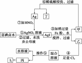 在已经提取氯化钠、溴、镁等化学物质的富碘卤水中,采用下图所示的工艺流程生产单质碘: