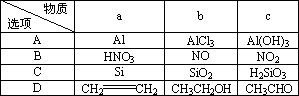 下列所列各组物质中,物质之间通过一步反应就能实现如图所示转化的是________