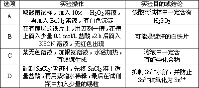 下列实验操作与预期目的或所得结论一致的是________.