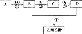 已知:①A是石油裂解气的主要成份,A的产量通常用来衡量一个国家的石油化工水平②2CH3CHO+O22CH3COOH.现以A为主要原料合成乙酸乙酯,其合成路线如下图所示.