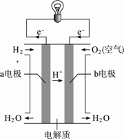 (3)通过氢气的燃烧反应,可以把氢气中蕴含的化学能转化为热能,如果将该氧化还原反应设计成原电池装置,就可以把氢气中蕴含的化学能转化为电能,右图就是能够实现该转化的装置,被称为氢氧燃料电池.该电池的正极是________(填“a电极”或“b电极”),在负极发生的电极反应是________,电池反应为________.