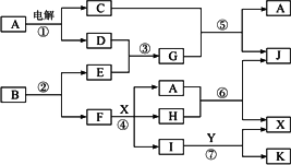 下图中,A是一种无色液体,G是极易溶于水的碱性气体,Y是胃酸的主要成分,K是不溶于稀硝酸的白色沉淀,反应⑤是工业制X的主要反应之一.