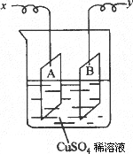 如图是可用于测量阿伏伽德罗常数的装置示意图,其中A、B是两块纯铜片,插在CuSO4稀溶液中,铜片与引出导线相连,引出端分别为x、y.