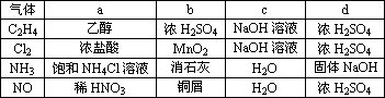 拟用图所示的装置制取表中的四种干燥、纯净的气体(图中铁架台、铁夹、加热及气体收集装置均已略去,必要时可以加热;a,b,c,d表示相应仪器加入的试剂).