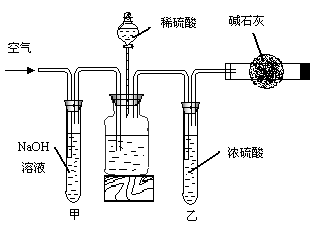 操作步骤D中,要缓慢鼓入空气数分钟,鼓入空气的作用是________;装置甲的作用是________;装置乙的作用是________