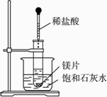 如图所示,把试管放入盛有25℃时饱和石灰水的烧杯中,试管中开始放入几小块镁片,再用滴管滴入5 mL盐酸于试管中.试完成下列问题: