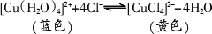 CuCl2溶液有时呈黄色,有时呈黄绿色或蓝色,这是因为在CuCl2的水溶液中存在如下平衡: