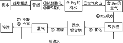 空气吹出法工艺,是目前“海水提溴”的最主要方法之一.其工艺流程如下:
