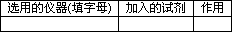 将所选的仪器连接顺序由上至下依次填入下表,并写出该仪器中应加试剂的名称及其作用.