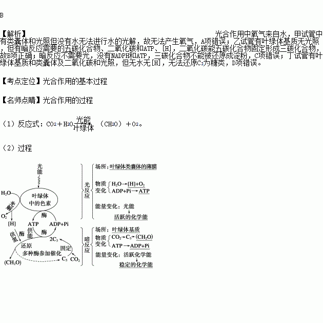 A、甲试管可得到18O2 B、乙试管可得到三碳化