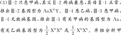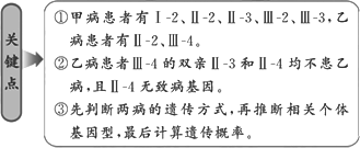 答案:(1)常染色体显性遗传 伴X染色体隐性遗传 (2)AaXbY aaXBXb (3) 思路点拨:此题考查遗传系谱图的分析,包括遗传方式判断、基因型推断及概率计算,解答时应明确以下几点: