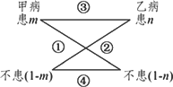 ①只患甲病的概率是m·(1-n); ②只患乙病的概率是n·(1-m); ③甲、乙两病同患的概率是m·n; ④甲、乙两病均不患的概率是(1-m)·(1-n)。 |
