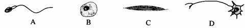 A为精子,C为肌细胞,D为神经细胞,皆为高度分化的细胞,不具备分裂能力。 |
