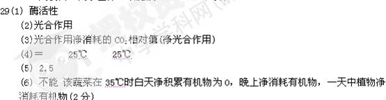 (6)若日温恒定在35℃时,该蔬菜将______(能或不能)正常生长,理由是____________________________________________。(2分)