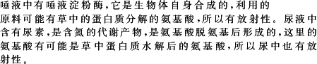 用含15N标记的(NH4)2SO4给水稻施肥,经过放射性检测,结果在草食性动物的唾液和尿液中均检测到15N的存在,那么唾液和尿液中最终检测到的15N,分别来源于
