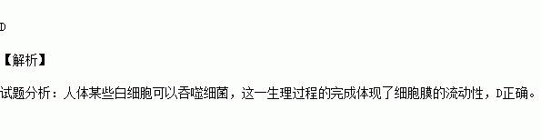 人体某些白细胞可以吞噬细菌,这一生理过程的完成体现了细胞膜的( )