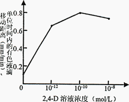 (3)与D组相比,当2,4-D溶液浓度为10“mol/L时,有色液滴在单位时间内移动的距离更________。