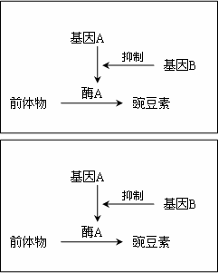Ñо¿±íÃ÷£¬¾ö¶¨²úÉúÍã¶¹ËØµÄ»ùÒòA¶ÔaΪÏÔÐÔ¡£µ«ÁíÒ»¶ÔµÈλ»ùÒòB¡¢bÖУ¬ÏÔÐÔ»ùÒòB´æÔÚʱ£¬»áÒÖÖÆÍã¶¹ËØµÄ²úÉú¡£