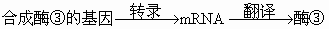 实验一: C实验二:反应② 应③ 实验三:酶③ 由实验一可知突变株所需要的氨基酸在 2、4和6培养基中都有而在1、3和5上都没有,分析培养基的配方可知是氨基酸C。对于实验二,当用瓜氨酸代替氨基酸X时,突变株能生长,说明反应③能正常进行,而当用鸟氨酸代替则不能生长,说明鸟氨酸不能转化为瓜氨酸,也就是反应②不能进行;对于突变株b无论是用瓜氨酸还是鸟氨酸代替都不能生长,说明瓜氨酸不能转变成氨基酸X,则是反应③不能进行造成的。在实验三中,由图中的代谢途径可知,要产生更多的氨基酸Y,就是要抑制瓜氨酸合成氨基酸X,所以要诱导使反应③不能进行,也就是诱导出不能合成催化反应③的酶的突变株。 |