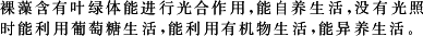 裸藻可作为水体污染的指示生物,其体内含有叶绿体。若将它放在含有葡萄糖培养液的黑暗环境中,它也能进行繁殖,这说明裸藻