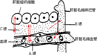 (1)用箭头在上图中表示出A液、B液、C液、肝脏组织细胞之间的物质交换的关系。