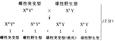 野生型与突变型之比为2:1,且雌雄个体之比也为2:1。这一结果显示:某种配子或某种基因型个体是致死的,请用遗传图解表示并加以说明(基因用B-b)。